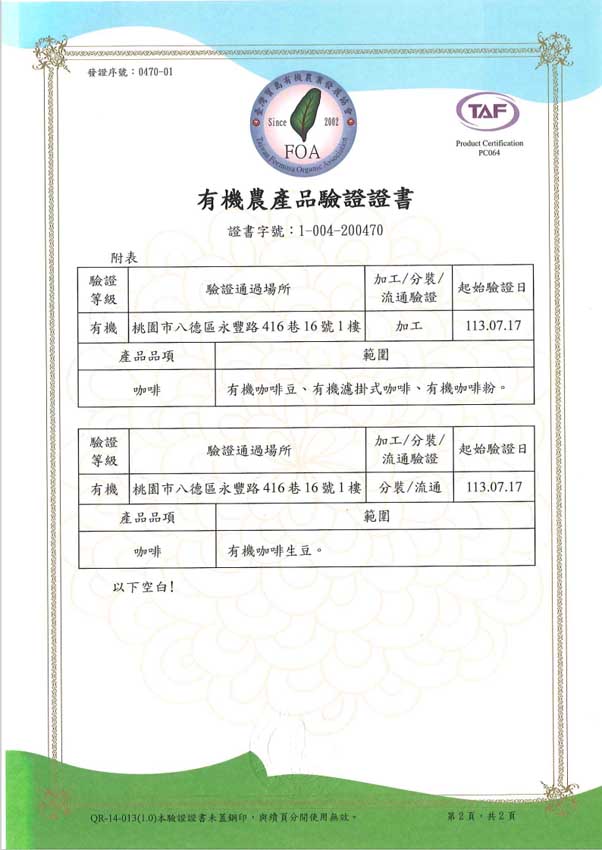 ・有機生豆認證